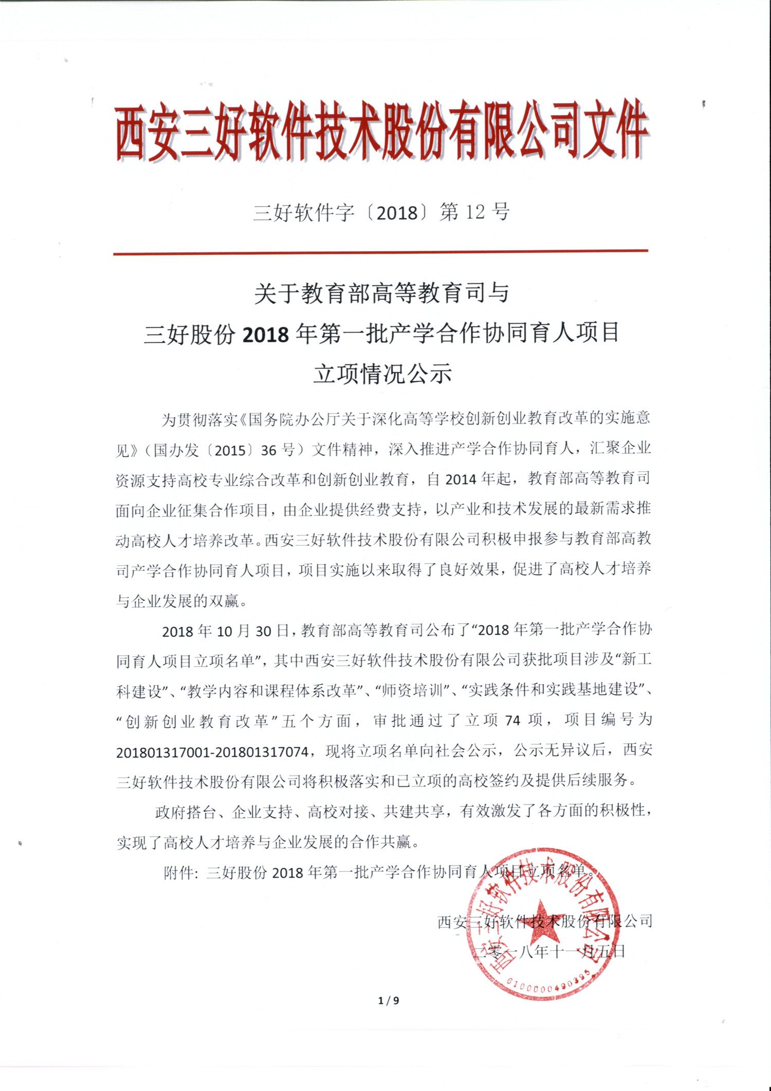 關(guān)于教育部高等教育司與三好股份年2018年第一批產(chǎn)學(xué)合作協(xié)同育人項(xiàng)目公示