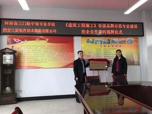 繼日照職業(yè)技術(shù)學院后,2017年3月31日,西安三好軟件技術(shù)股份有限公司迎來第二個校企合作共建項目——三門峽中等專業(yè)學校《建筑工程施工》省級品牌示范專業(yè)建設(shè)項目!三好股份市場部總監(jiān)張明升攜團參加校企合作共建項目揭牌儀式!