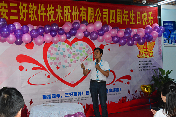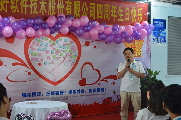 6月30日午后,所有的三好家人們齊聚公司,共同為三好股份的四周年慶典做準(zhǔn)備。從繁忙的工作中抽出2個(gè)小時(shí),從蕪雜的思緒中整理對(duì)三好發(fā)展的想法。在會(huì)上,三好股份的大家長——董事長張巍表達(dá)了對(duì)三好未來的期許;市場總監(jiān)張明升訴說了市場開拓的艱辛與成就;研發(fā)總監(jiān)楊小春則回顧了一路走來的四年中,三好如何從初生牛犢走向百花齊放。