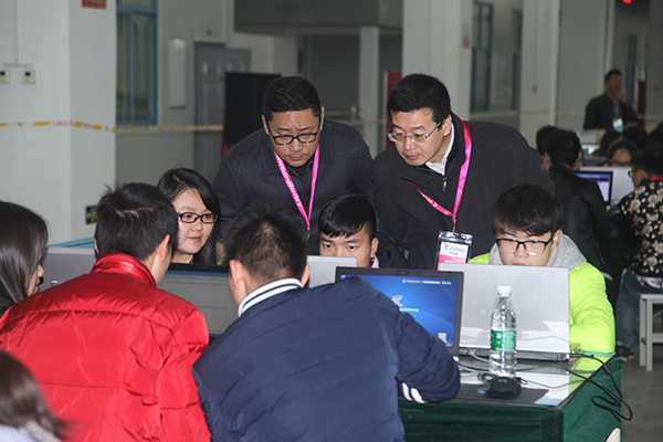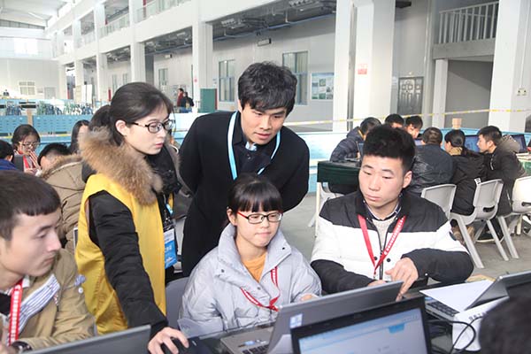 現(xiàn)場工作人員為參賽學生指導
