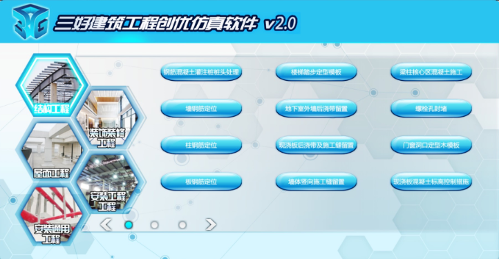 三好股份自主研發(fā)的三好建筑工程創(chuàng)優(yōu)仿真軟件,依據(jù)施工工藝標(biāo)準(zhǔn)、優(yōu)秀工程施工方法、魯班獎(jiǎng)工程施工工藝等設(shè)計(jì),采用教學(xué)-實(shí)訓(xùn)-考核一體化教學(xué)實(shí)訓(xùn)新模式,重點(diǎn)通過節(jié)點(diǎn)工藝的展示,不僅解決在校學(xué)生的實(shí)習(xí)、實(shí)訓(xùn)問題,提升學(xué)生專業(yè)技術(shù)能力,同時(shí)可以為施工企業(yè)員工提供整套的深臨其境的仿真培訓(xùn)解決方案,使得項(xiàng)目管理者和操作人員在創(chuàng)優(yōu)過程中不斷進(jìn)步,為企業(yè)打造優(yōu)質(zhì)工程提供藍(lán)本。
