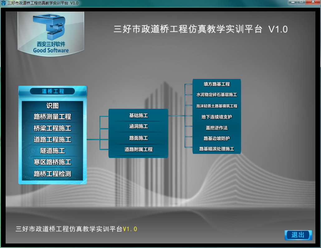 為了解決老師針對實(shí)踐課程教學(xué)素材缺乏,解決建筑專業(yè)學(xué)生不能到現(xiàn)場實(shí)習(xí)、實(shí)訓(xùn)的問題,三好軟件基于實(shí)際工程圖紙,結(jié)合現(xiàn)場施工工藝和管理流程,研發(fā)了《三好市政道橋工程仿真教學(xué)實(shí)訓(xùn)平臺》,該軟件不僅可以解決在校學(xué)生的實(shí)習(xí)、實(shí)訓(xùn)問題,同時可以為施工企業(yè)的新入職員工提供整套的深臨其境的仿真培訓(xùn)。